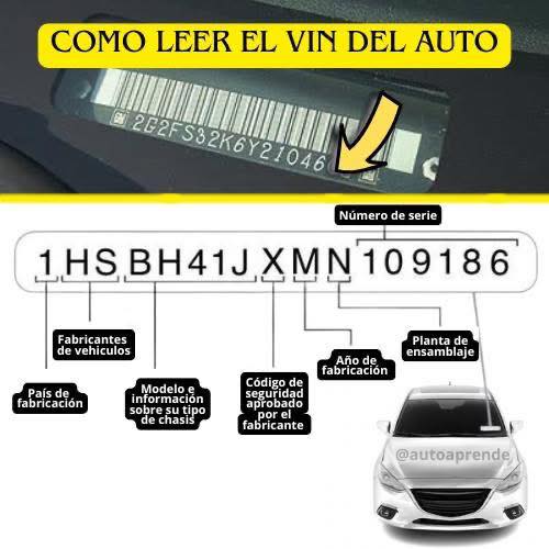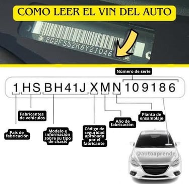 El VIN (Vehicle Identification Number) es un código de 17 caracteres (en autos modernos) y suele aparecer en varios lugares.